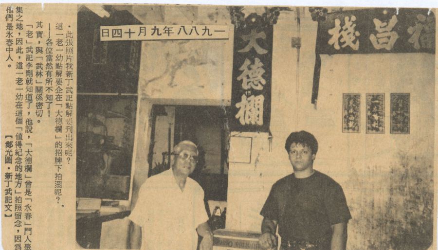 Below Grandmaster Andreas Hoffmann respectfully gives his first copy of his book on Weng Chun Kung Fu to Great Grandmaster Wai Yan, a few years before his death in 2004. Honered be his memory.