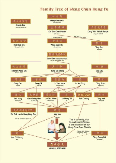 Shortly before Wai Yan's death in 2004 Master Andreas Hoffman, as the only european, was named inheretor of a kung fu system and performed the traditional tea cermony. As Grandmaster Andreas, travelled back to Germany and kept his word of spreading the Art and today it is trained all over the world.